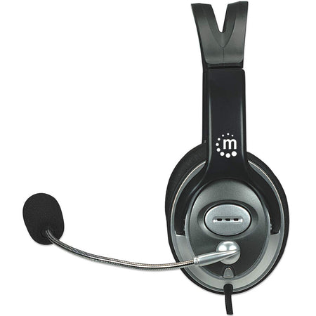 The round metal ear cups of the Manhattan Classic Stereo Headset feature well-padded, cloth-covered cushions to help buffer unpleasant sounds from the ear and enhance super-bass response. The split outer headband and padded inner sling provide a comfortable fit for almost any listener. An in-line rotary control provides fingertip convenience for quick volume adjustments to accommodate varying listening conditions. The integrated microphone with flexible gooseneck boom is ideal for instant messaging, VoIP communications and multimedia experiences. A foam microphone cover is included to help reduce “pop" and distortion for clear voice transmission. The long cable is covered with a durable nylon mesh jacket to help protect it from damage and wear. Installation and use with desktop and notebook computers is easy with dual 3.5mm dual stereo plugs.