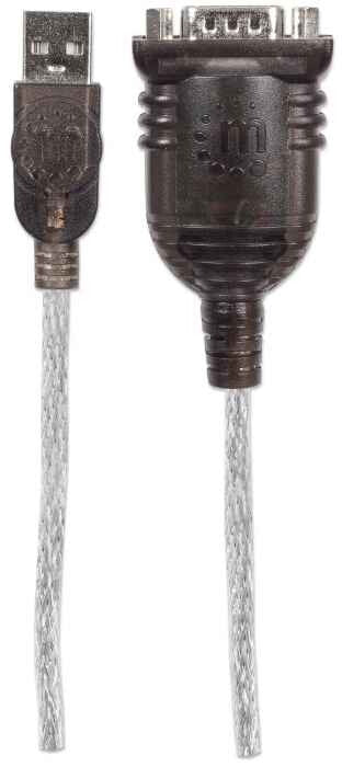 Manhattan USB-A to Serial Converter cable, 1.8m, Male to Male, Serial/RS232/COM/DB9, Prolific PL-2303RA Chip, Black/Silver cable, Three Years Warranty, Polybag