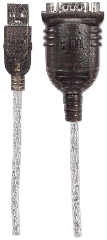 Manhattan USB-A to Serial Converter cable, 45cm, Male to Male, Serial/RS232/COM/DB9, FTDI FT232RL Chip, Equivalent to ICUSB2321F, Black/Silver cable, Three Years Warranty, Polybag