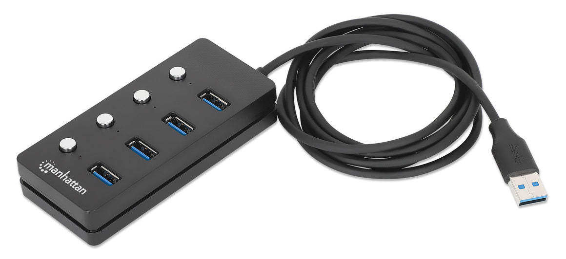 The Manhattan 4-Port USB 3.0 Type-A Hub turns one of your device's SuperSpeed USB-A ports into four so you can easily connect a keyboard, mouse, flash drive and more. Devices that fit the USB 3.2 Gen 1 spec (formerly known as USB 3.0) can reach transfer speeds up to 5 Gbps for external storage, printing and more. The hub's SuperSpeed ports are backward compatible to run older USB versions 2.0 or even 1.1. You can also charge your phone or tablet since the Hub supplies up to 5 V / 0.9 A of power.