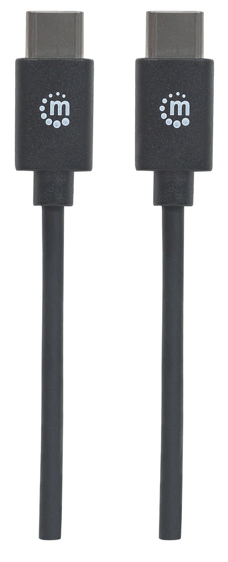 Manhattan USB-C to USB-C Cable, 2m, Male to Male, Black, 480 Mbps (USB 2.0), 3A, Equivalent to USB2CC2M, Hi-Speed USB, Lifetime Warranty, Polybag