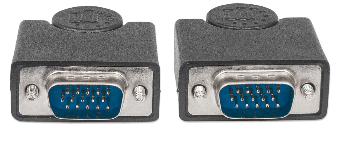 Reliable connections for superior signal quality. Manhattan SVGA Cables easily connect a monitor with a desktop or notebook computer. Ideal for use with video splitters, KVM switches and any HD15-equipped display, computer or device, Manhattan SVGA Cables are engineered and constructed of quality materials to deliver dependable transmissions in video applications. Full foil and braided shielding help minimize EMI interference and mini-coax (RGB) with paired video wire construction combine to provide maximum conductivity and clear, crisp images with reduced distortion over extended distances.