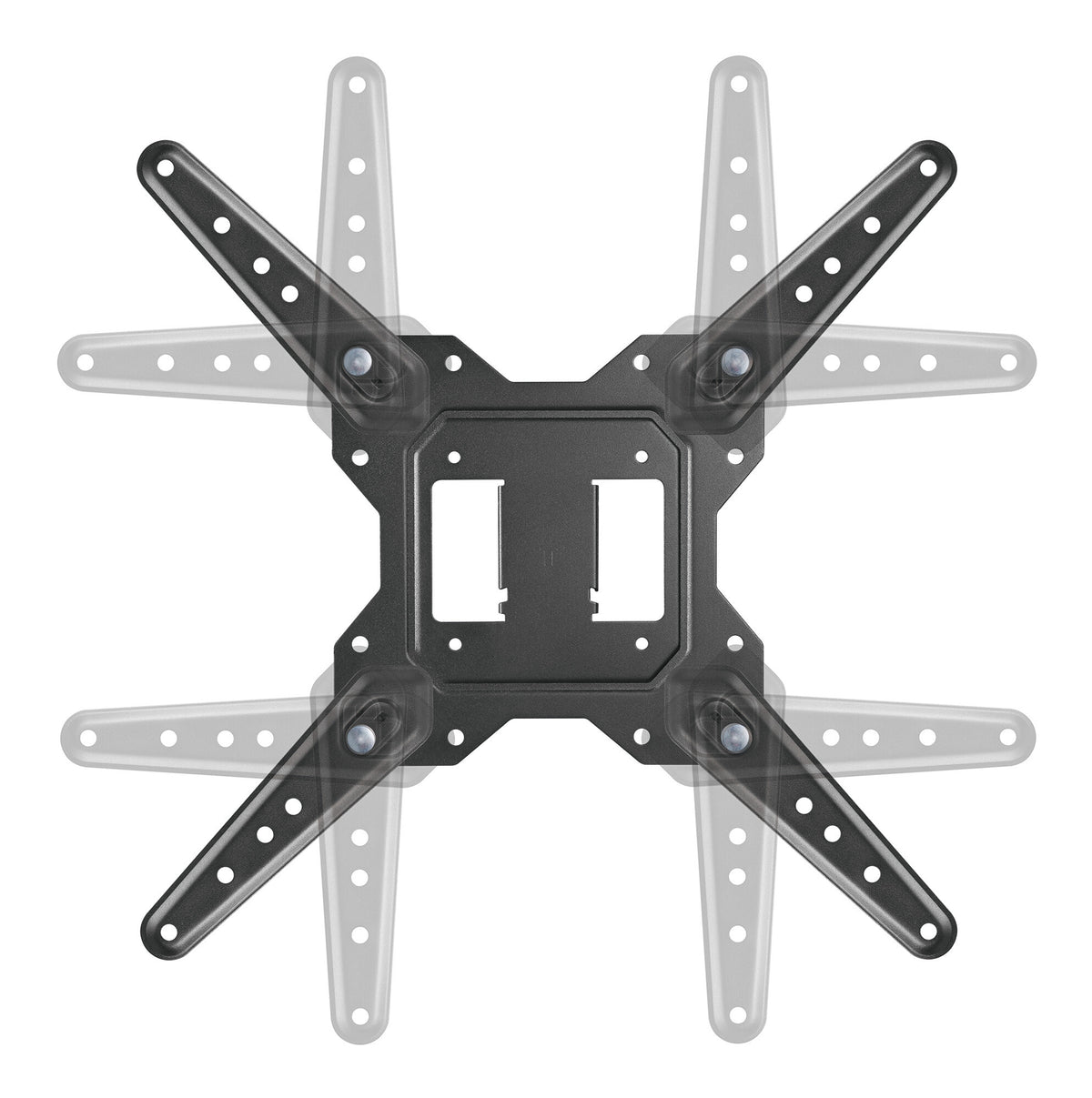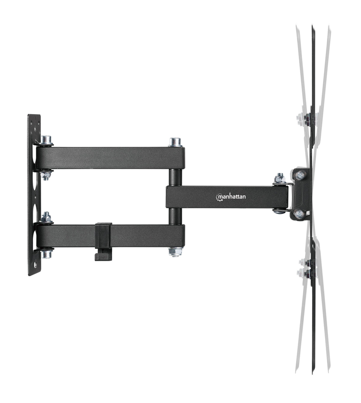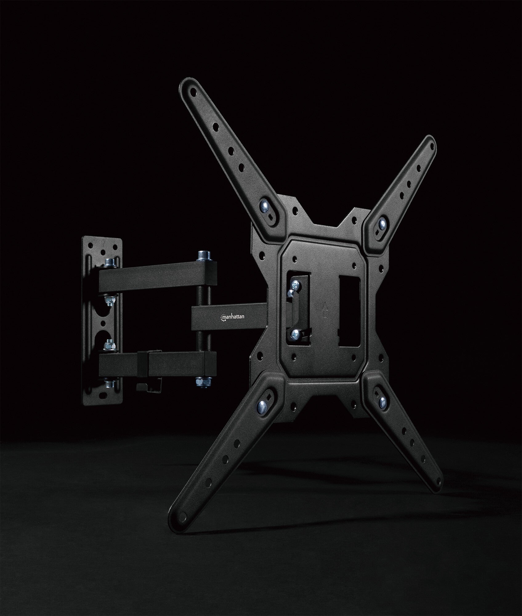 Enhance your viewing experience with the Manhattan Full Motion TV Wall Mount, designed to support flat or curved TVs from 23"" to 55"" up to 30 kg (66 lbs). Equipped with an articulating double-link swing arm, this mount allows for maximum flexibility, offering a tilt of +3° to -10° and a swivel range of +/-90°, ensuring you get the perfect viewing angle from any seat in the room.