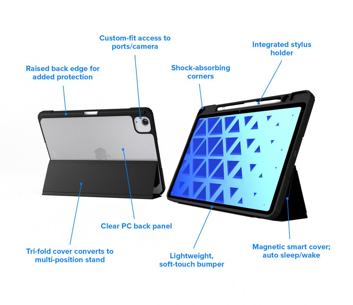 Lightweight, stylish protection for the iPad Pro 13" is a breeze with the MAXCases Breeze folio case. The custom-fit design enables easy access to all ports and controls, while the shock-absorbing edge and corner bumpers guard against damage from drops and bumps. The smart on/off cover safeguards battery life and offers handy roll-back positioning for viewing and typing angles. The snug, integrated holder keeps the Apple Pencil/equivalent stylus close at hand while also allowing for easy removal. Enjoy protection and style in a sleek, lightweight design that’s a perfect fit for the iPad Air.