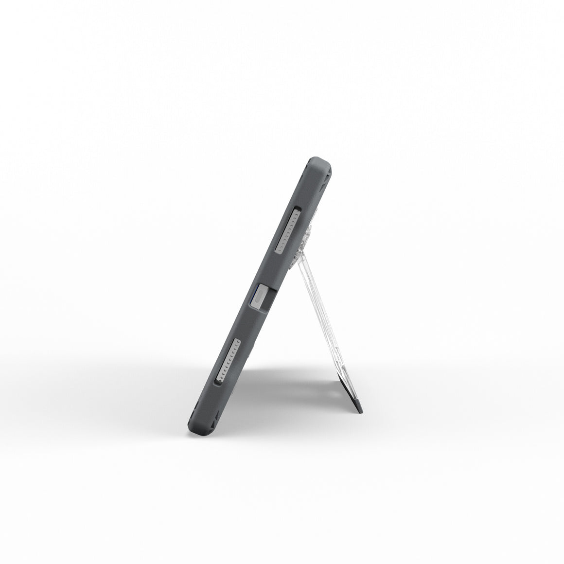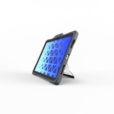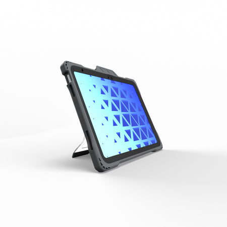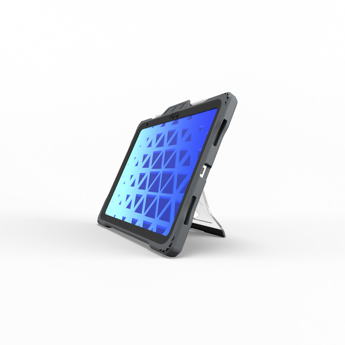 Featuring the repositionable FlexStand for unlimited viewing angles, the Shield Extreme-X2 case provides a perfect fit and outstanding protection for the iPad 10 (2024). The updated design features a completely clear back perfect for viewing asset tags and unique identifiers along with a rugged TPU exterior bumper for unrivalled shock dissipation and protection from drops and impact damage. This durable outer layer additionally resists grease, abrasion, and tears. The removable screen protector enables easy replacement and reinsertion as needed. The patent-pending FlexStand kickstand is virtually break-proof and provides unlimited, stable positioning options thanks to the easy-sliding friction hinge. The custom-fit design delivers easy access to all ports and buttons, ensuring seamless device functionality. Durable, updated corner anchors make it easy to add an (optional) hand strap, shoulder strap or any clip-on accessory.