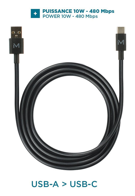 This 1-metre cable allows you to easily connect your USB-C devices to a USB-A port for charging or data transfer. Ideal for smartphones, tablets or compatible devices.