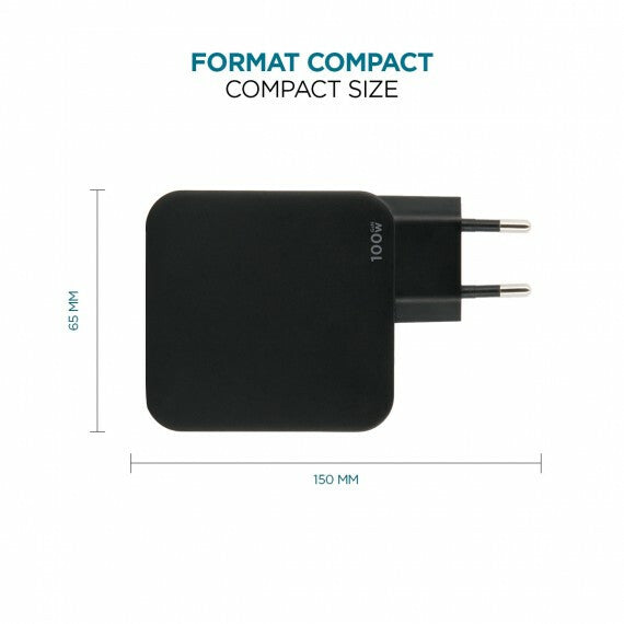 This 100W GaN mains charger has 3 ports: 2 USB-C and 1 USB-A. So you can charge up to 3 devices simultaneously. With an output of 100 W, this compact charger features Gallium Nitride (GaN) technology for optimum performance.
