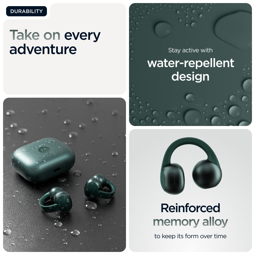 Introducing moto buds loop, sleek and lightweight earbuds designed to elevate your audio experience while keeping you connected to the world around you. With an open-ear design, moto buds loop delivers the aesthetic you want while providing the all-day comfort you crave. Stay in control of your busy day without missing a beat when paired with devices powered by moto ai.(1) Listen with unbelievable clarity and balance thanks to Sound by Bose. Experience crystal-clear calls with an advanced microphone system. And keep it all protected thanks to premium materials and a water-repellent design.(2) With up to 8 hours of nonstop battery(3) and plenty more in the case, you have all the power you need. moto buds loop is always in tune with you.