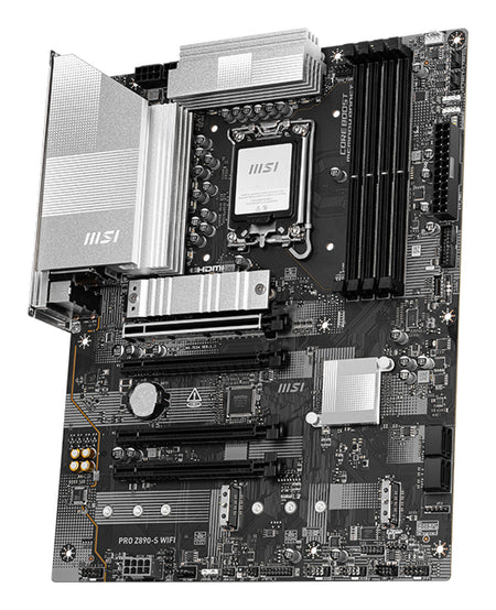 PRO Z890-S WIFI offers a simple design with a harmonious silver color scheme that perfectly matches both white and black PC builds. It is engineered with many exclusive features of MSI, a true Wi-Fi 7 with EZ Antenna, 2.5G LAN, Thunderbolt 4, PCIe 5.0 M.2, and Supplemental PCIe Power, ready for the Intel® Core™ Ultra processors.
