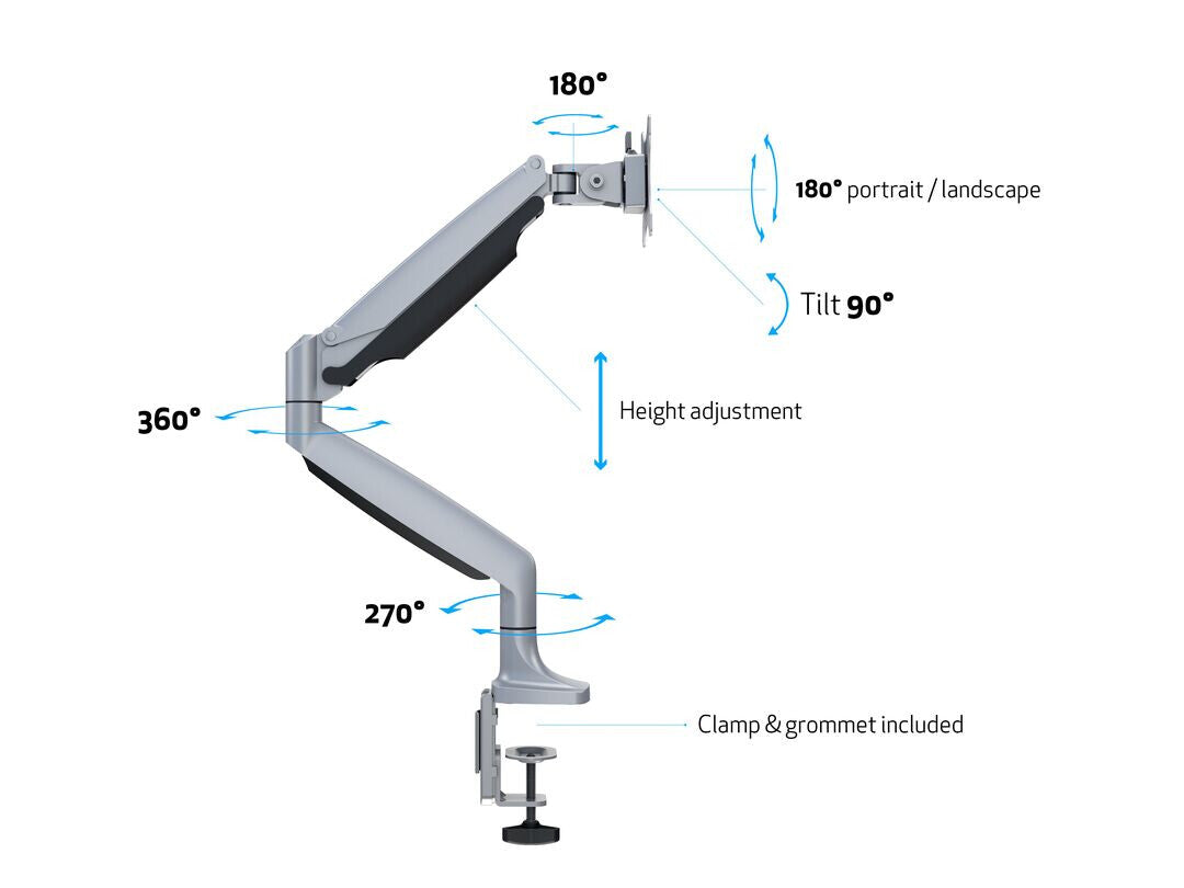 Our well designed, high performance monitor mount offers a wide range of features rarely seen at this competitive price level. The arm easily adjusts allowing you to work in a more comfortable, ergonomically correct working position, sitting down or standing up.