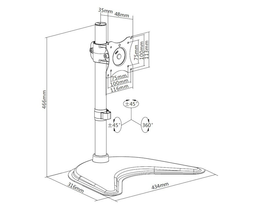 The M Deskstand Basic Single is your new office partner giving great flexibility and ease of adjustment and works with almost all LCD screens on the market supporting VESA standards of 75/100 mm holding screen weight up to 10 kg.