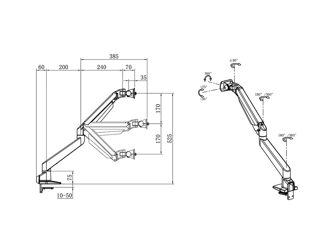 The M Gas Lift Arm Samsung Odyssey G9 Black holds to your standard workdesk (max 50mm), or assemble it using a workdesk thru hole technique.