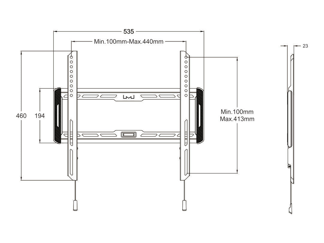 The Multibrackets M Universal Wallmount Fixed is a low profile fixed wall mount for 32" & 65" flat-panel TVs up to 50 Kgs. Its flush design allows it to sit just 23mm from the wall focusing looks on your TV and not the mount. Its solid construction of steel is both strong and durable. After installation the TV can slide left and right on wall plate after mounting and thus give the end-user a possibility to perfect position the TV after installing it. The quick release straps on the mounting brackets stays hidden with Multibrackets Smart magnet system, but are when needed easily pulled down to unlock the TV from the wall plate for cable access.