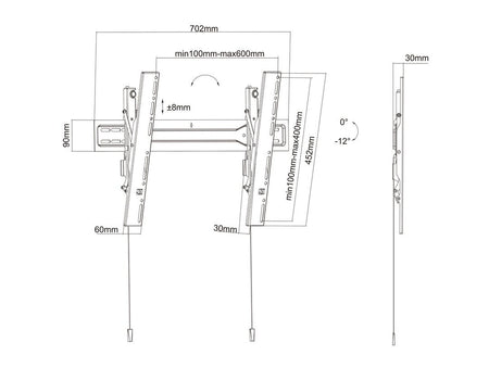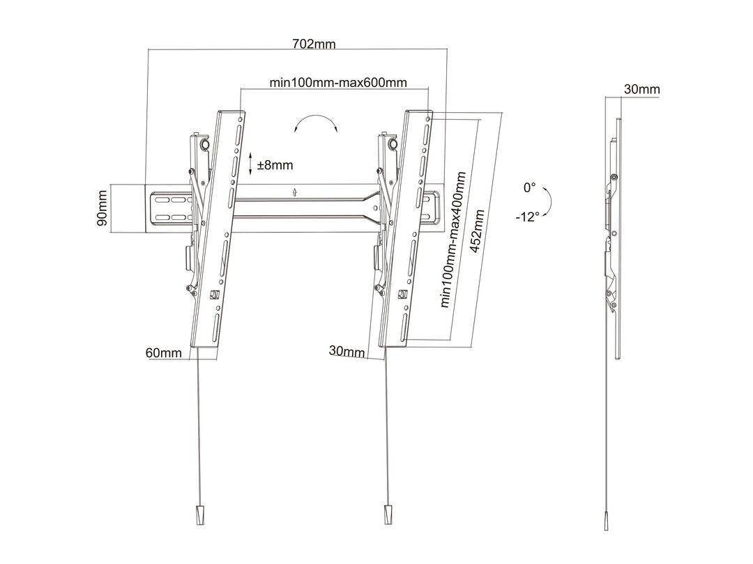 At only 30mm the M VESA Wallmount Super Slim Tilt 600 MAX our Multibrackets designers takes the super-slim TV mounts to a new level. With close to no gap wall distance turns your TV into a picture on the wall. The innovative fine tuning design allows for easy post-installation positioning. The tool less tilting mechanism will greatly reduce eye and neck pain and annoying sun glare for perfect viewing experience. Also, the magnetic design in the bracket and the strap end also add a modern look to your house.