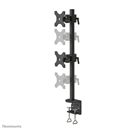 The Neomounts desk mount, model FPMA-D700DV is a tilt-, swivel and rotatable desk mount for 2 flat screens up to 24". This mount is a great choice for space saving placement on desks using a desk clamp.