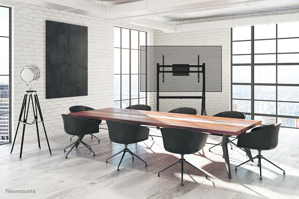 The Neomounts FL50-525BL1 MOVE Go is a mobile floor stand for flat screens up to 86" with a maximum weight capacity of 76 kg. Due to the sturdy design and the included touch screen stabilizers, the MOVE Go is a perfect solution for touch screens. The floor stand is manually adjustable in 4 preset height positions, ranging from 106 to 136 cm.
