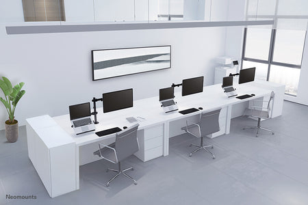 The Neomounts desk mount, model FPMA-D550NOTEBOOK is a tilt-, swivel and rotatable desk mount for flat screens up to 32" notebooks up to 15,6". This mount is a great choice for space saving placement on desks using a desk clamp or grommet.