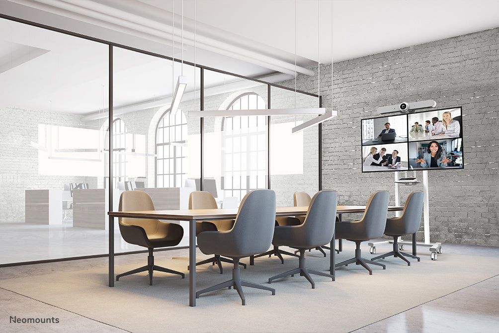 The universal AFL-875WH1 and AV1-875BL videobar & multimedia kits are optionally available and enable the installation of a separate cam shelf and multimedia device shelf to the trolley. Included to the kits are an adapter for respectively the Logitech Rally Bar (Mini) or Bose Professional VB-S/VB1. Various other accessories are also available for the MOVE Lift series, such as the ADM-875BL2 dual screen adapter or the practical ABL-875 wheel brake lock set.