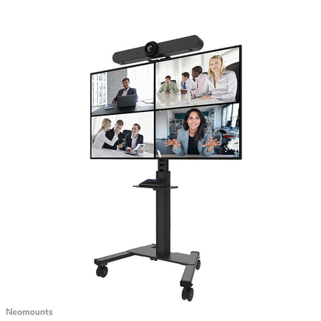 The Neomounts AFLS-825BL1 is a videobar & multimedia kit optional for the FL50S-825BL1 mobile floor stand. The kit enables the installation of a separate cam shelf and multimedia device shelf to the trolley. The universal cam shelf can be installed both above and below the screen and is adjustable in height, to fit the screen. Additionally, the cam shelf can be mounted both on the front and back of the stand. Included to the kit is an adapter for the Logitech Rally Bar and Rally Bar Mini (also both placeable above and below the screen). In addition, the universal multimedia shelf is suitable for installation of i.a. the Logitech Tap.