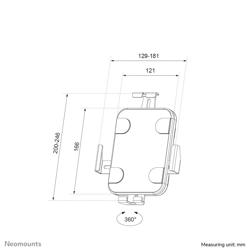 The Neomounts WL15-625BL1 is a wall mount tablet holder that can rotate 360° to easily switch between portrait and landscape orientation.