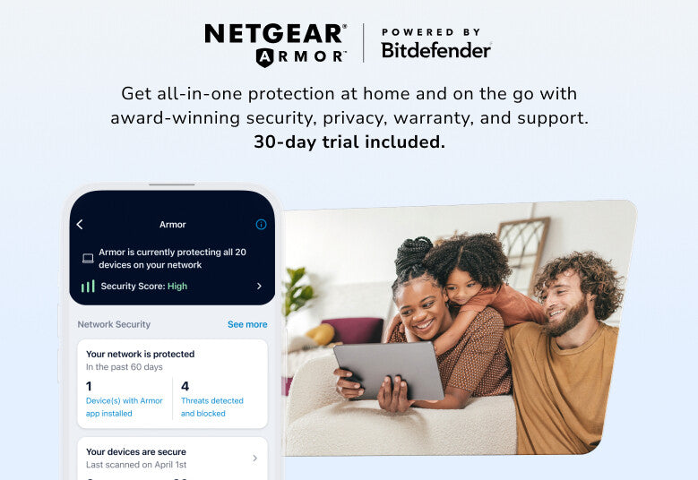NETGEAR Armor bundles award-winning cybersecurity, privacy, warranty, and tech support for total peace of mind and protection (30-day trial included)
