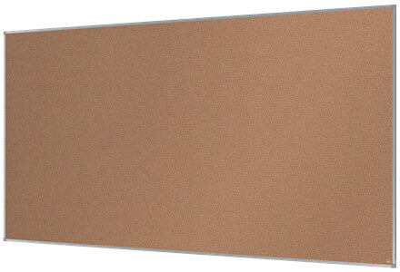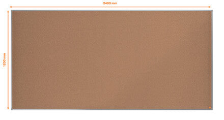 Cork notice board with an anodised aluminum trim and fixed by a through corner wall mounting. Excellent Cork notice board surface to pin and display your notices. Size: 2400x1200mm.