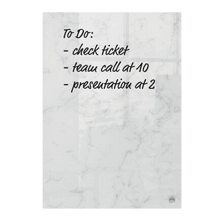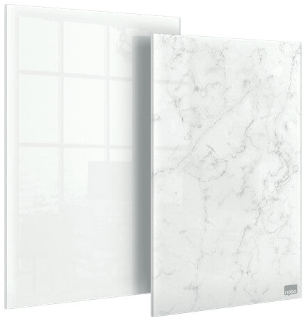 - 2x dry erase mini whiteboard notepads with a stylish frameless glass whiteboard design: 1x brilliant white and1x contemporary marble effect.