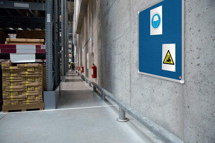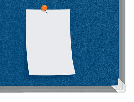Felt notice board with a modern stylish aluminum trim and fixed with a through corner wall mounting. Excellent felt notice board surface to pin and display your notices.