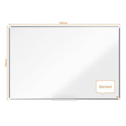 This modern standard magnetic whiteboard, with its sleek aluminium trim and stylish corner caps, is the perfect addition to any office, school, or home workspace. Its painted steel surface offers increased erasability which is less prone to ghost marks, stains and resistant to scratches and dents, making it ideal for moderate use. This large whiteboard has a smooth surface that enhances writing, ensuring clear, bold and stand out communication for effective collaboration. Designed with a concealed traditional through corner-mount system, it can be easily installed in either landscape or portrait orientation. The wall mounted whiteboard is magnetic, allowing for easy attachment of notes, photos, and key information and includes a large clip on accessories tray for the storage of whiteboard pens and whiteboard magnets. Our Premium Plus Whiteboards proudly carry the globally respected EU Ecolabel, recognising environmental excellence and ensuring reduced impact throughout the product life cycle. Whiteboard size: 1500x1000mm