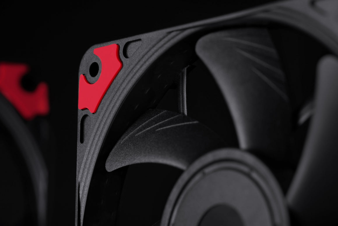- Self-adhesive anti-vibration pads in 6 colours: The NF-A12x15 PWM chromax.black.swap comes with 8 swappable, self-adhesive anti-vibration pads in black, white, red, blue, green and yellow respectively, which allow the fan to be fully colour-customised in order to coordinate it with other components or popular build schemes