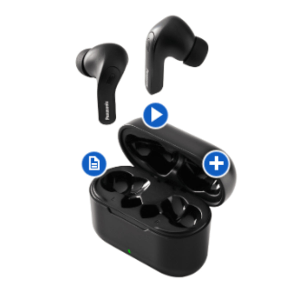 The Panasonic digital wireless stereo earphone is water resistant earphone and has operating time of 20 hours with charging cradle.