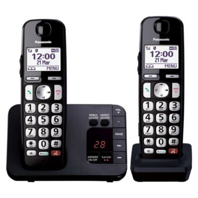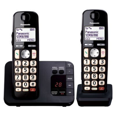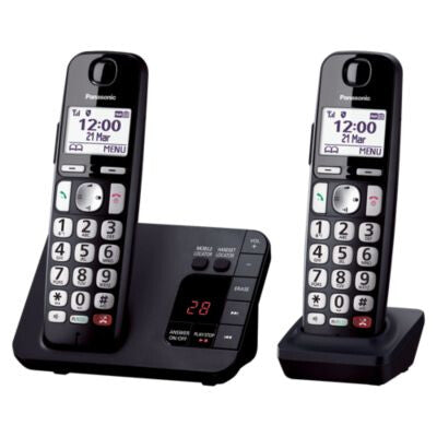 Digital cordless phone with a 40-min answering machine, easy-to-use buttons, enhanced volume, various call blocking functions, Talking Caller ID, and Hearing Aid Compatibility (HAC) support. 1 x additional handset with charge station included.