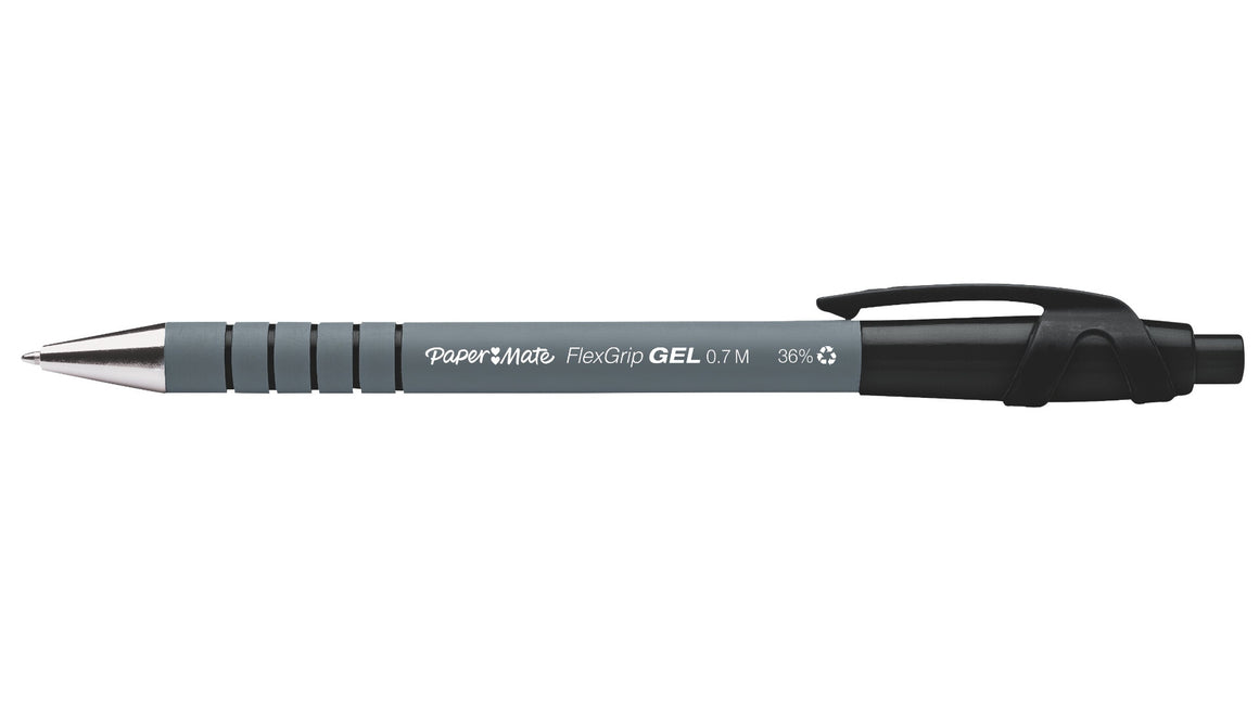 The Paper Mate FlexGrip Retractable Gel Pen delivers smooth, comfortable writing in a sleek and convenient design, with bright gel ink that ensures your words are perfectly captured in every note and to-do list. Featuring a rubberised barrel and a textured grip, this retractable pen provides exceptional comfort and control, even during extended writing sessions. The retractable design deploys and retracts the tip with a simple click, while the metal nosecone provides a premium look and feel. Ideal for home, office, and school use, this pen features a versatile 0.7 mm medium point that handles a wide variety of writing tasks. A handy clip allows you to fasten the pen to a pocket planner or notebook for easy storage and transportation. Available in black, blue, red, and green ink colours. Paper Mate pens - the reliable everyday writing companion you can count on.