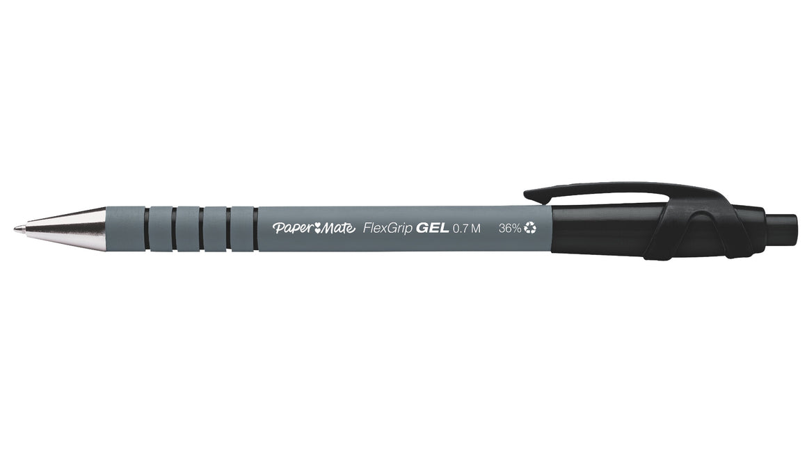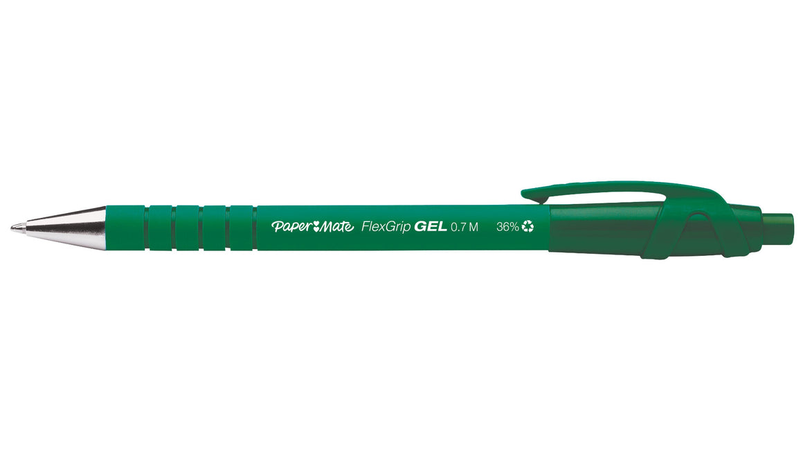 The Paper Mate FlexGrip Retractable Gel Pen delivers smooth, comfortable writing in a sleek and convenient design, with bright gel ink that ensures your words are perfectly captured in every note and to-do list. Featuring a rubberised barrel and a textured grip, this retractable pen provides exceptional comfort and control, even during extended writing sessions. The retractable design deploys and retracts the tip with a simple click, while the metal nosecone provides a premium look and feel. Ideal for home, office, and school use, this pen features a versatile 0.7 mm medium point that handles a wide variety of writing tasks. A handy clip allows you to fasten the pen to a pocket planner or notebook for easy storage and transportation. Available in blue, blue, red, and green ink colours. Paper Mate pens - the reliable everyday writing companion you can count on.