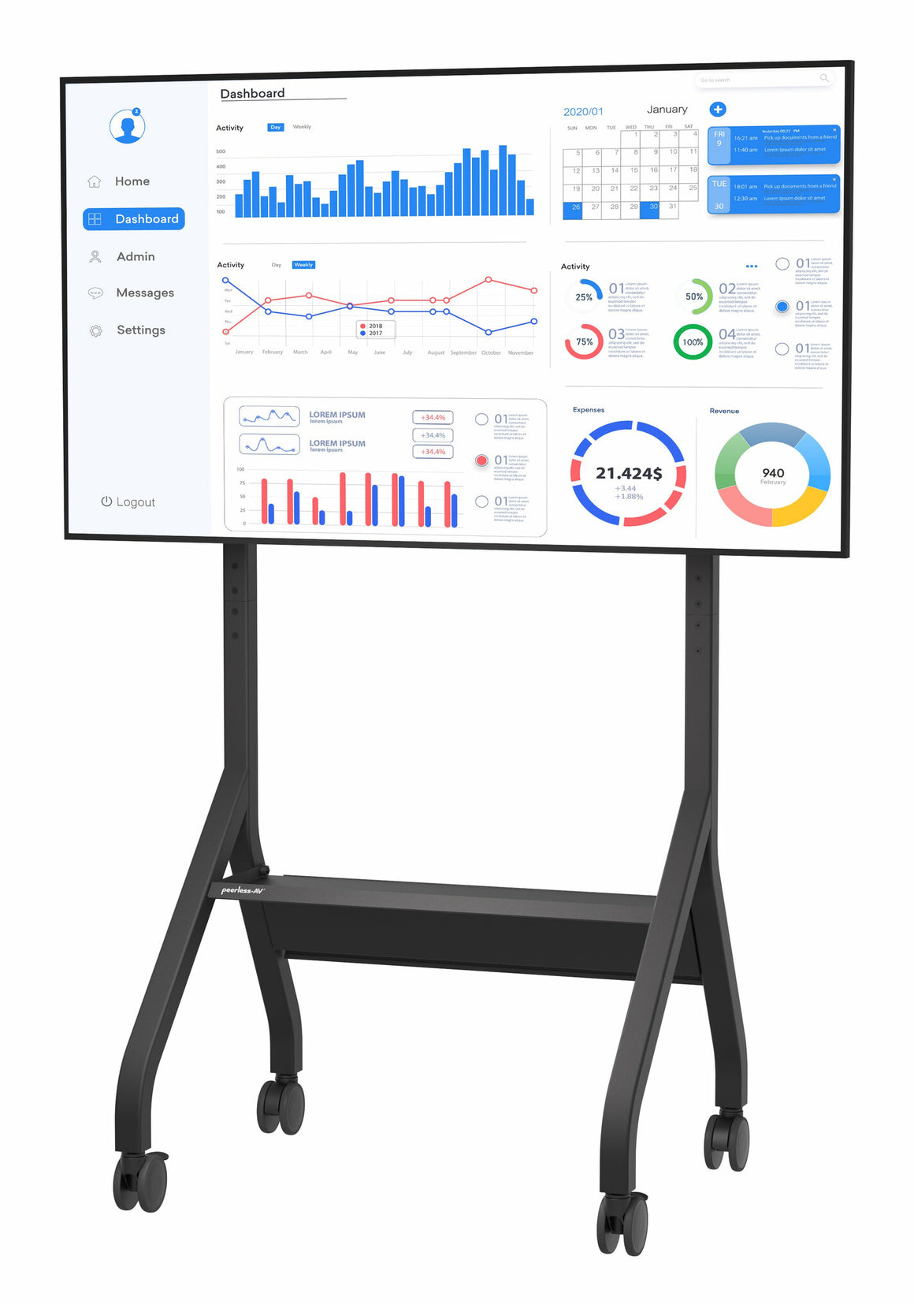 The SR860 SmartMount® Flat Panel Trolley provides all of the necessary features to support your mobile display deployment, whether that’s in a boardroom or a classroom. The minimalistic, tubular design provides a clean aesthetic by hiding all cabling through the internal structure. The trolley also includes a IEC pass through cable that is neatly stored in the rear hinging compartment. This protects the cord from damage, but also makes moving your display from room-to-room a breeze. The rear ABS molded cover helps hide any cabling, media players, or mini PCS, which means behind the display will not look cluttered if the trolley is placed where the back is visible.