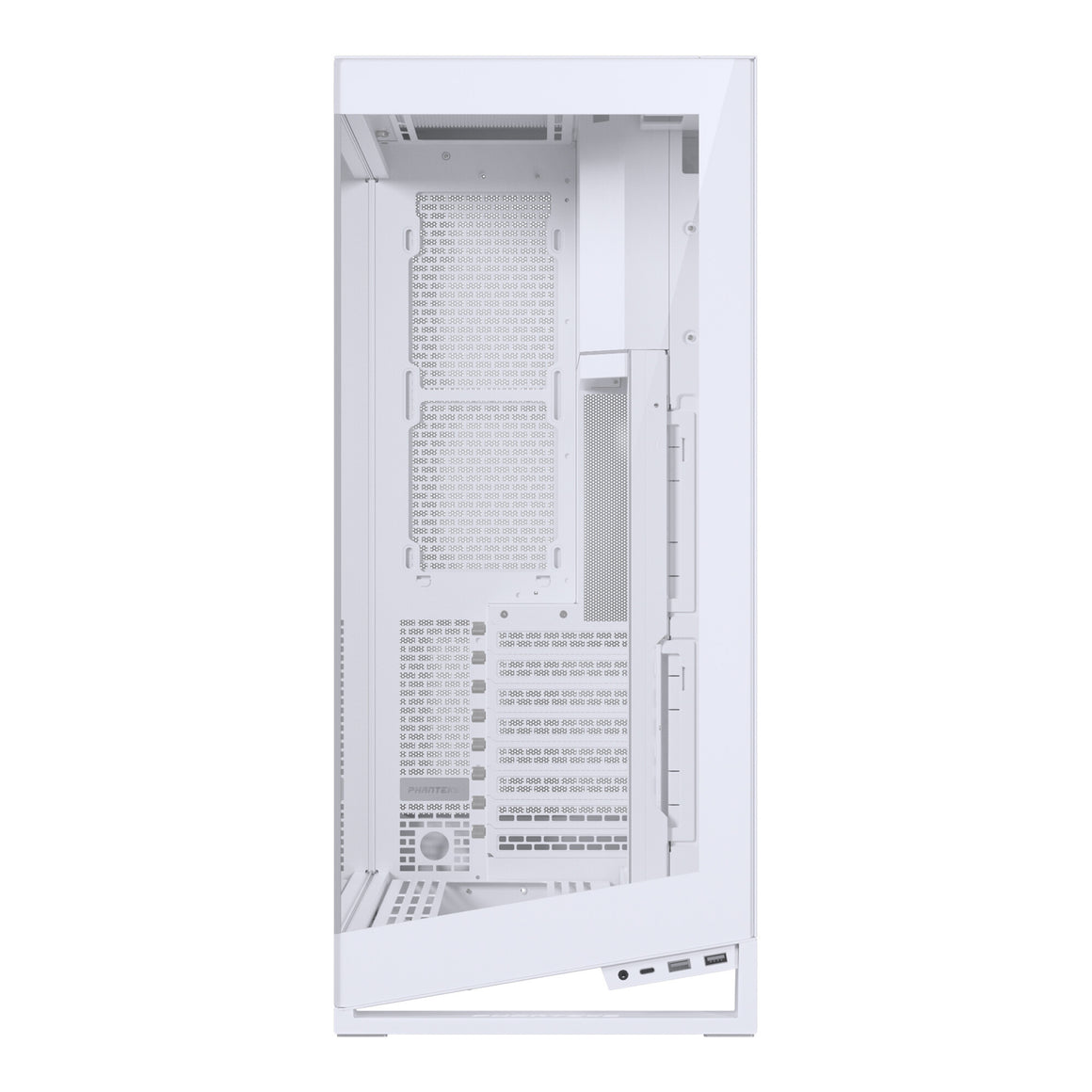 The Phanteks NV7, with its unmistakable purpose design, highlights the system components with the motherboard at its center. One defining design element of the NV7 is its strong and defining outer frame that captures and accentuates the hardware components.