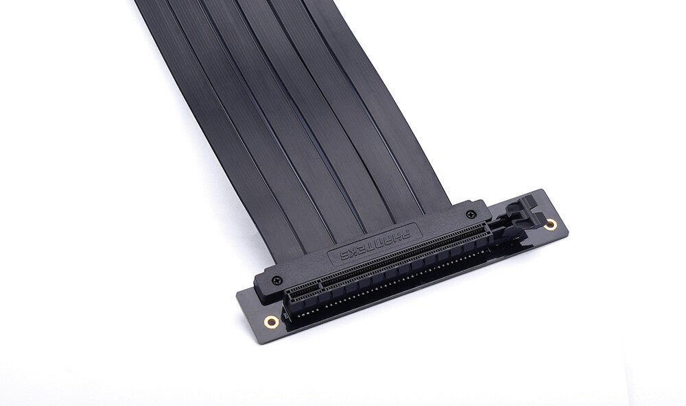 Phanteks riser cables are ideal for extending GPU performance for GPU that are mounted vertically. Compatible with PCI-E 3.0 standard, the riser cable features a slim cable design for more flexibility and clean aesthetics. Made from high quality solder points and gold-plated contacts to work flawlessly with high-end GPUs. EMI Shielding cover to reduce interference, quality PCB design to ensure no signal loss, and fast data transmission allows you concentrate more on work/gaming.
