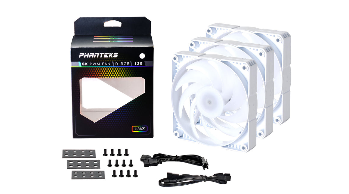 The SK D-RGB PWM fans provide a high airflow cooling solution with the nine-bladed design. Integrated with D-RGB lighting in the hub, the fans light up with smooth and vibrant colors. With built-in PWM capabilities the fans offer precise control for high airflow or quiet cooling configurations. The included rubber dampeners and the unique rigid frame design further reduce vibrations and noise. The SK D-RGB PWM fans are the perfect way to further increase the cooling performance of any computer chassis.
