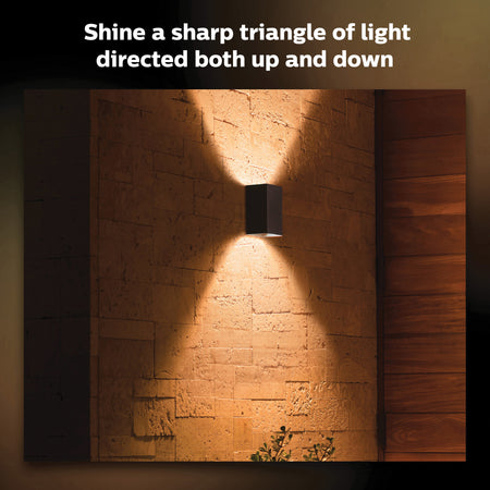 Directing its light in triangular light effects both up and down, the Resonate wall light in black allows you to illuminate your porches and patios with elegant, colourful light.