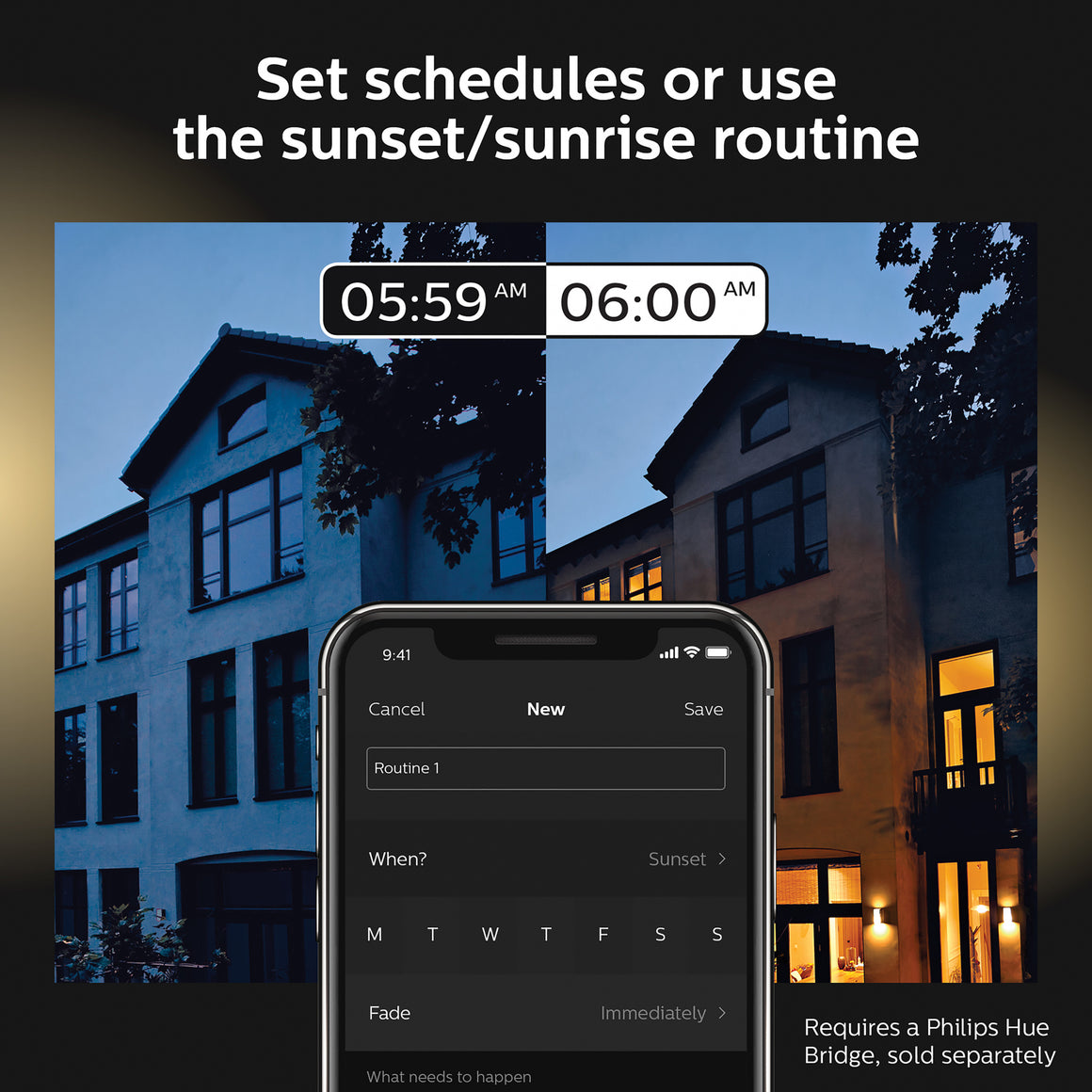 - Requires a Philips Hue bridge