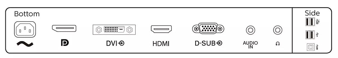 VGA, HDMI, DisplayPort, Audio (3.5mm), AC |