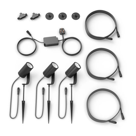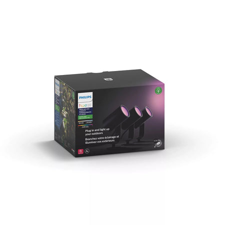 This Lily spot light 3-pack lets you highlight your favourite outdoor features, create interesting shadows and more. Simply connect the smart outdoor spotlights into any standard wall socket using the included low-voltage power supply to get millions of shades of white or coloured light in your garden.