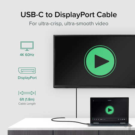 - Compatibility—Supported on Windows, macOS, Chrome OS, and Linux. Requires Thunderbolt 3 / 4 or a USB-C port that supports DisplayPort Alternate Mode. Also works as Thunderbolt to DisplayPort cable