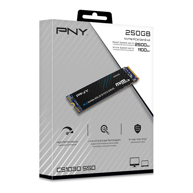 The PNY CS1030 M.2 NVMe SSD is an excellent choice for an NVMe upgrade from a SATA based solid state drive (SSD) or traditional hard drive in an NVMe enabled desktop or laptop computer. The CS1030 drive is designed to be an upgrade from conventional SATA based storage to take advantage of the high bandwidth of the NVMe interface to help realize faster boot times, quicker application launches, and better overall system performance.