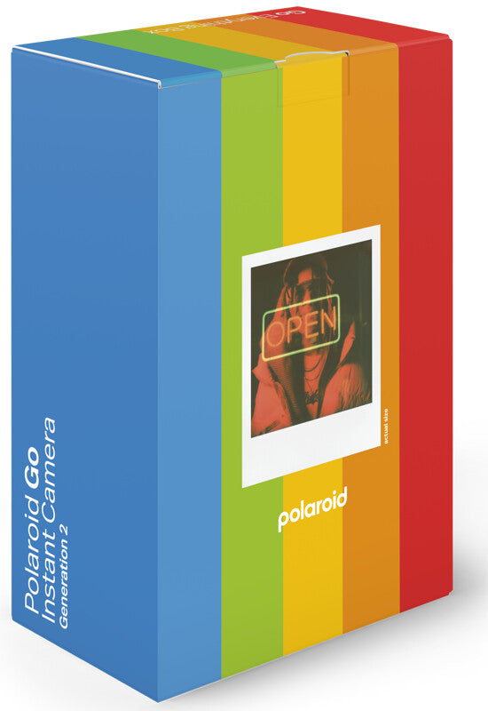 It’s really small (the smallest camera in the world) but comes with big creative potential featuring a selfie mirror, self-timer, double exposure, and can be paired with its own teeny tiny color filters. All in the classic design, and now made with 30% recycled materials. Includes a Polaroid Color Go Film Double Pack for 16 color instant photographs with white frames. Selfie mirror Self-timer Double exposure Large aperture range (F9-F42) Precise light sensor Accurate, human-friendly flash Internal rechargeable lithium-ion battery Wrist strap and USB-C charging cable included Compatible with Polaroid Go filters Works with Polaroid Go film Black colour A doublepack instat colour film included Product Dimensions 105 x 84 x 62 mm Product Weight 239 grams Battery Lithium-Ion battery Outer Shell ABS, PC (30% recycled plastics) Shutter System 1/300-1sec Aperture f9 and f42 Lens Polycarbonate resin fixed focus lens Focal Length 51.1mm Field of View Horizontal 48.1°, vertical 49.1° Flash System Vacuum discharge tube storage Compatible With Go Film Device Interface Ports USB Type C charging inputWhat's in the box: Polaroid Go Camera (Gen 2) Polaroid Go Color Film USB-C Charging Cable (1.2m) Wrist Strap Quick Start Guide Safety & Compliance Leaflet