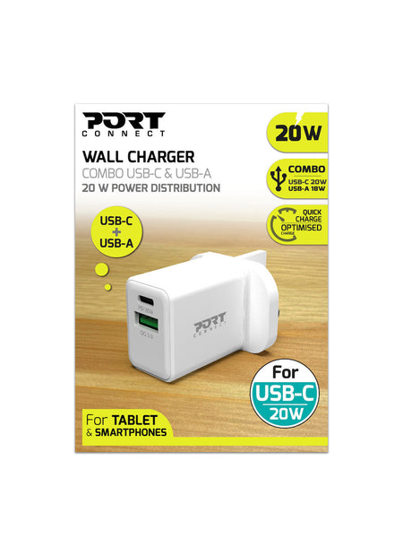 This charger is a USB-C power distribution & USB-A combo wall charger. The USB-C port delivers up to 20W to charge a tablet.