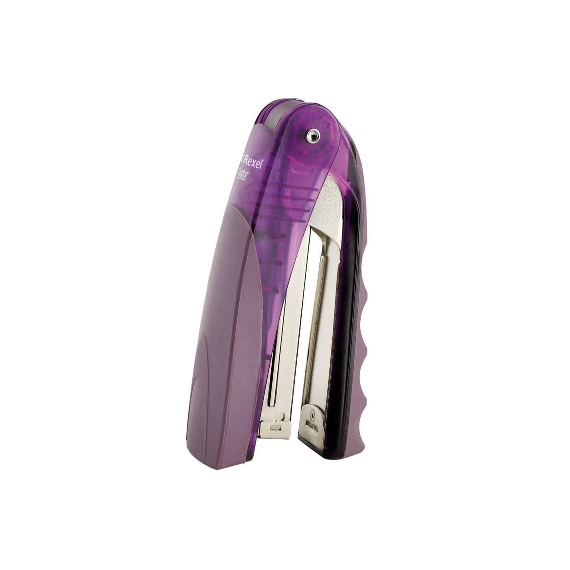 The Rexel Centor is a compact everyday stapler with a soft feel finish for safe, comfortable handling. It stands vertically or sits horizontally, providing tacking and temporary pinning. Offering permanent stapling, it has a 73mm throat depth and handles up to 20 sheets using Rexel No. 56 or up to 25 sheets with No. 16 staples. A pack of 1000 No. 56 staples included.
