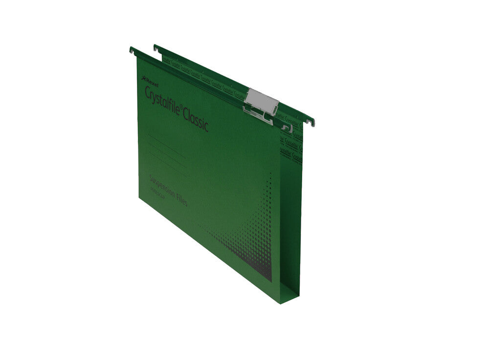 Box of 50. Supplied complete with tabs and inserts. Suspension files can be used for filing cabinets, desk drawer chassis and desk top organisers. Available in four colours: green, red, blue and orange.