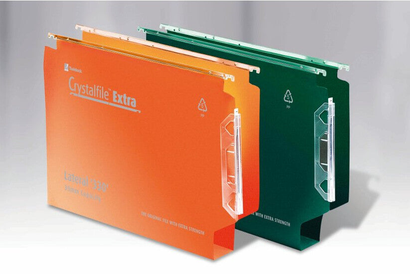 Tough polypropylene Rexel Crystalfile™ Extra Lateral Files typically last up to five times longer than manilla files. With a wipe clean satin finish, these files are supplied in packs of 25, complete with tabs and unique printable inserts. Featuring extra long ID tabs which link the files together, these lateral files allow easy and frequent access to documents, yet optimise storage space.