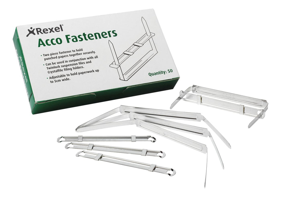 Available in packs of 50, Rexel 80x50mm Fasteners are the most popular fasteners in the world. Solid stainless steel, they are ideal for bundling perforated documents up to 8cm thick.